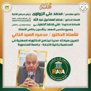 لتعيين سيادته مديراً لبرنامج الدكتوراه المهنية في المحاسبة بكلية التجارة – جامعة المنصورة