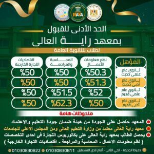 يسر معهد راية العالي أن يعلن عن الحد الأدنى للقبول لطلاب الثانوية العامة للعام الدراسي الجديد! ✨